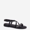 Women’s sandals made of eco leather are a stylish and comfortable option for warm days. Set on a flat heel, they provide comfort throughout the day. This model stands out with decorated straps at the front and one braided strap that adds a unique character to them. Fastened with a buckle with an adjustable strap, they allow for a perfect fit to the foot. The soft, leather insole ensures comfort, making these sandals an excellent choice for everyday summer stylings.
