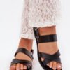 Women’s sandals made of eco-leather, set on a flat heel, are a classic everyday proposition. Fastened with a buckle with an adjustable strap, they provide a perfect fit to the foot. At the front, there are two interwoven straps. Perfect for summer stylizations, they go well with dresses, skirts, or pants.