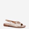 Women’s sandals made of eco leather are an elegant proposal for summer days. Set on a flat heel, they provide comfort and stability throughout the day. Fastened with a buckle with an adjustable strap, they allow for a perfect fit to the foot. The insole made of natural leather ensures comfort with every step. At the front, there is a decorative detail that adds a special charm. These sandals are an excellent choice, combining an elegant design with functionality.