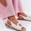 Women’s sandals made of eco leather are an elegant proposal for summer days. Set on a flat heel, they provide comfort and stability throughout the day. Fastened with a buckle with an adjustable strap, they allow for a perfect fit to the foot. The insole made of natural leather ensures comfort with every step. At the front, there is a decorative detail that adds a special charm. These sandals are an excellent choice, combining an elegant style with functionality.