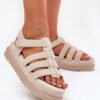 Women’s sandals made of eco-suede are an ideal proposal for warm days. Set on a platform, they provide comfort and lightness while walking. The model fastened with a Velcro allows for easy adjustment, and the straps at the front add a stylish look to them. These sandals will work perfectly in summer stylizations, combining functionality with a trendy look.