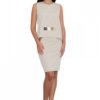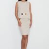 Elegant set in a simple version. A blouse with a decorative gold accent adds chic and modernity. Skirt fitted before the knee with eco-leather inserts, covered zip. The set is perfect for many occasions of the day and evening.