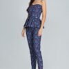 An elegant set of straight trousers with a corset finished with a frill will make you look clear and feminine. A fashionable cut in a simple edition will go well with many stylings.