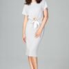 An exceptional set of short blouse and skirt is a fashionable look this season. Shoulder-length blouse with bow tie and fitted skirt with a knee-length cut. The cut of the blouse wraps around the silhouette giving it a feminine character.