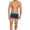 Set of 2 men’s boxer shorts in navy blue. One striped, the other dotted, both trimmed with contrasting thread. Soft cotton knit. Smooth elastic waistband.