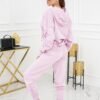 Spring novelties in action! Bet on a comfortable, soft knitted tracksuit, in which you will comfortably spend every single evening. The set is two-piece, which gives you a possibility to wear it together as one set or mixed with your favourite t-shirt or jeans. Sweatshirt with delicate ribbing at wrists, decorative creases on elbows and a hood. Trousers with shapely, subtly loose form, in sporty style. The waist with soft rubber band and a drawstring in the colour of the tracksuit.