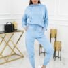 Spring novelties in action! Bet on a comfortable, soft knitted tracksuit, in which you will comfortably spend every single evening. The set is two-piece, which gives you a possibility to wear it together as one set or mixed with your favourite t-shirt or jeans. Sweatshirt with delicate ribbing at wrists, decorative creases on elbows and a hood. Trousers with shapely, subtly loose form, in sporty style. The waist with soft rubber band and a drawstring in the colour of the tracksuit.