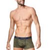 Designer boxers right away in 2 complementary pieces. Colours navy + khaki, very interesting. One of the boxers presents a currently fashionable pattern, the other is plain. Sporty cut, front panel with stitching in a contrasting colour. Printed elastic waistband. A great introduction to the new season.