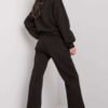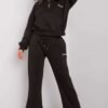 A set consisting of a sweatshirt and sweatpants. Blouse with long sleeves and a pocket on the front. Trousers with pockets and tie at waist.