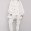 An interesting set consisting of a down vest, a sweatshirt and sweatpants. The vest is fastened with press studs, on the sides there are slip pockets. Straight cut sweatshirt with long sleeves. Sweatpants with tie at waist and slant pockets.