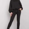 Quilted tracksuit set consisting of a sweatshirt and trousers. Long sleeve sweatshirt without hood. Sweatpants with waist tie and slip pockets.