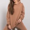 A set consisting of a sweatshirt and sweatpants. Sweatshirt put on over the head, with a hood and pockets. Straight cut trousers.