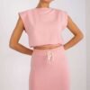 Set consisting of a blouse and skirt. Blouse with elastic band at the bottom. Skirt with trouser to tie. The set is perfect for the summer.