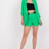Elegant set consisting of a jacket and shorts. The jacket has 3/4 sleeves, lining, cushions sewn on the shoulders. Shorts with high waist, rubber at waist. Slip-on pockets on the sides. Shorts with decorative belt. A perfect set for many occasions.