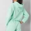 Tracksuit set consisting of a sweatshirt and shorts. Sweatshirt with long sleeves and a hood. Shorts with elastic band and tie at waist. Slip-on pockets on the sides.