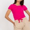 Ladies set consisting of a t-shirt and shorts. T-shirt with short sleeves, round neckline. High waisted shorts with slip pockets on the sides. Shorts with elastic waistband and ties.