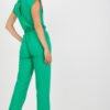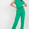 Summer set consisting of a blouse and long pants. Blouse in a classic cut with a fastening at the neck. Long pants with an elastic waistband and binding, with slip pockets on the sides.