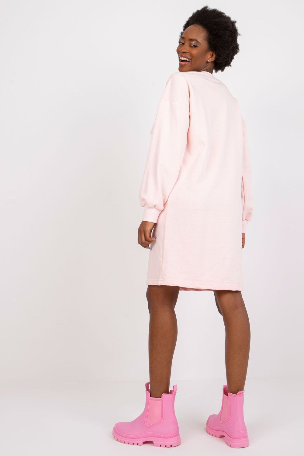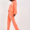 A sweatshirt set consisting of a sweatshirt and pants. Sweatshirt with long sleeves and a hood. Long pants with a high waist, elastic waistband and binding, slip pockets on the sides.