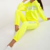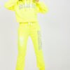 A sweatshirt set consisting of a sweatshirt and pants. Sweatshirt with long sleeves and a hood. Long pants with high waist, elastic waistband and binding, slip pockets on the sides.