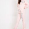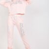 A sweatshirt set consisting of a sweatshirt and pants. Sweatshirt with long sleeves and a hood. Long pants with high waist, elastic waistband and binding, slip pockets on the sides.
