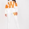 Women’s tracksuit set consisting of a sweatshirt and long pants. Sweatshirt of loose cut, with long sleeves. Long pants with a tailored cut, waistband with tie straps, slip pockets on the sides.