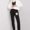 A sweatshirt set consisting of a sweatshirt and pants. Short sweatshirt with long sleeves and a hood. Long pants with waist tie and slip pockets.