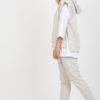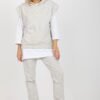 Sweatsuit set consisting of a blouse, sweatshirt and pants. Blouse with 3/4 sleeves and round neckline. Blouse with short sleeves and a hood. Long pants with a tie at the waist and slip pockets.