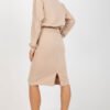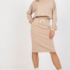 Tracksuit set consisting of a sweatshirt and skirt. Blouse with long sleeves and round neckline. Skirt with waist tie and slip pockets.
