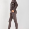 Velour set consisting of a blouse and pants. Blouse with long sleeves and a heart neckline. Long pants with a tie at the waist and slip pockets.