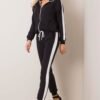 A sweatshirt set consisting of a sweatshirt and pants. The sweatshirt is zippered, with long sleeves and slip pockets. Long pants with waist tie and slip pockets. Set with contrasting piping.