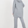 Women’s set consisting of a sweatshirt and pants. Sweatshirt of an extended cut with long sleeves and a hood. Long pants with waist tie and pockets.