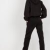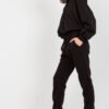 A sweatshirt set consisting of a sweatshirt and pants. Sweatshirt with long sleeves and a hood. Long pants with waist tie and slip pockets.