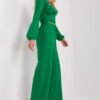 A casual set consisting of a blouse and pants. Tiered blouse with long sleeves and a heart-shaped envelope neckline. Long pants with a tie at the waist, slip pockets on the sides. set is ideal for everyday and not only.