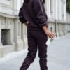 Sweatsuit set created from a pleasant high-quality knit fabric, so called Teddy Bear, is the perfect choice for all women who want to feel comfortable, warm and look stylish at the same time, yes, it is possible! The top of the tracksuit is a sweatshirt with a hood and a kangaroo pocket, where you can successfully fit your phone or wallet. The long sleeves, which you can freely roll up, have been finished with an elastic band. The sweatshirt goes perfectly with high-waisted jeans or a classic tube skirt. The pants have loose long legs, but not too voluminous, to emphasize your curves and make you feel really feminine in our tracksuit. They have elastic at the waist and legs. The elastic at the waist stretches up to 10 cm. The pants match perfectly with a denim katana and sneakers. Tracksuit set designed and sewn in Poland. Length in the table refers to the sweatshirt.