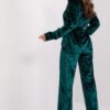 This velour set is synonymous with casual comfort and style. The shirt, buttoned up, exudes casualness and ease, perfect for everyday wear. Made of velour, which is pleasant to the touch, the shirt provides a feeling of softness and freedom. The pants, also made of velour, have wide legs, which emphasizes the casual nature of the set. The high waistband with elastic band not only ensures comfortable wearing, but also gives an original look. In addition, the pants have practical side pockets for convenient storage of small items. The whole set is completed with a tie belt, which is not only a practical addition, but also gives completeness to the styling. This is an ideal set for women who value comfort and freedom, while not giving up fashion expression even in everyday situations.