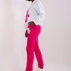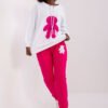 A sweatshirt set consisting of a sweatshirt and pants. Sweatshirt with long sleeves and round neckline. Decorative print in the shape of a teddy bear on the front. Long pants with a tie at the waist and pockets.