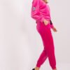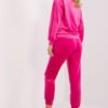 Elegant and feminine sweatshirt set made of velour knit is a combination of cozy comfort and chic style. The sweatshirt is tucked in over the head, has a round neckline and long sleeves. On one of the sleeves you will find an elegant patch, which adds originality to the set. The pants have a tapered leg finished with a drawstring and a tie at the waist. In addition, there are practical slip-in side pockets on the sides of the pants, which add functionality to this set. This set is perfect for many occasions. The magic is in the details, which means the accessories you choose to match it. You can wear it every day, to work, or to evening meetings, while maintaining your unique style.