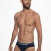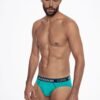 A set of men’s briefs made of high quality cotton. One piece patterned, the other uniform. Outside elastic at waistband, with company logo, fitted cut. Packaged in a box of two pieces.