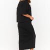 A set full of femininity and freedom, made of a pleasant to the touch, soft knit fabric. The upper part is a loose T-shirt with wide, short sleeves, decorated with a charming blouse. The lower part, in turn, is a fitted, long skirt with two slits, emphasizing the hips with an elegant welt. In this set you will feel both comfortable and extremely sensual. Perfect for various occasions from work to special meetings. This set is a perfect combination of elegance and comfort, ideal for women who appreciate a casual yet stylish look.