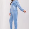 Introducing a unique velour set, consisting of a sweatshirt and pants, which stands out not only for its comfort, but also for its subtle casual style. It is ideal for those who want to combine comfort with fashion charm. The pants are characterized by a waist tie, which allows you to adjust them to your individual preferences and provides additional comfort. The styling welts at the legs add a lightweight and contemporary touch, while the high waistline accentuates the figure while providing comfort. The blouse in this set is distinguished by a decorative bow placed on the front, adding a subtle elegance to the whole look. The dominant pattern is a plain surface, making the set versatile and suitable for many casual outfits. The dominant material is high-quality polyester, which is not only durable, but also soft and pleasant to the skin, providing a feeling of exceptional comfort. The standard length of the sweatshirt and pants makes the set ideal for many different occasions. The sweatshirt’s long sleeve and round neckline add a timeless touch to the set, giving it versatility. In addition, the side slip pockets in the pants make the set practical and comfortable for everyday wear. This combination of casual style with subtle accents makes this set an excellent choice for those who appreciate comfort and a fashionable, casual look.
