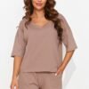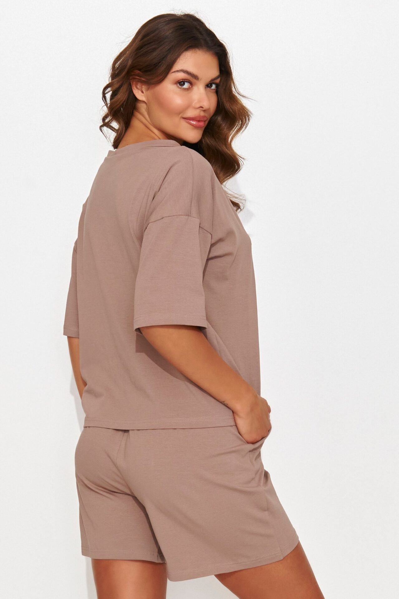 Light and airy women’s set sewn from fine knit fabric will change your approach to comfort. Blouse with a heart neckline, equipped with flared sleeves decorated with an elegant blouse. The casual cut of the blouse ensures comfortable wearing, while the loose shorts with side pockets add a casual and sporty style. This ensemble is perfect for everyday wear, being ideal for sports activities, meetings with friends, as well as for work. Available in several colors, it offers variety, allowing you to adapt it to every woman’s taste. Style, comfort and modernity, everything you need in one set.