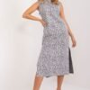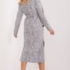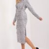 This elegant set consists of a perfectly tailored jacket and a dress with a classic cut, ideal for a variety of occasions, from work to business meetings or formal events. The dress, sleeveless, looks very stylish and feminine. The zipper closure ensures easy and comfortable putting on the dress, while adding a touch of modernity to the traditional cut. Its round neckline adds delicacy, emphasizing the neck. The dominant pattern of the dress is a subtle print, which adds delicate charm and elegance. The dominant material is high-quality cotton, guaranteeing comfortable all-day wear. The dress has a midi length, which makes it versatile and suitable for many occasions. The jacket, made of the same material as the dress, has long sleeves, making it an excellent option for colder days. Its classic cut and attention to detail give the overall look a professional touch. An additional feature is the tie belt, which accentuates the waist, giving the silhouette a feminine shape and elegance. This set is an excellent choice for women who want to look stylish, elegant and at the same time professional during work, business meetings or other formal occasions.