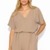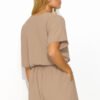 A casual and timeless women’s set sewn from a light and airy fabric will change your perspective on the combination of comfort and elegance. The blouse with a heart neckline, decorated on the sleeve with a minimalist logo plaque, perfectly complements the plain whole and thus allows you to identify the model with the brand. The shorts have practical side pockets and an elastic waistband, which allows for adjustment to many body types. The loose cut does not restrict movement and a slightly higher top optically lengthens the legs. The set comes in three color variants: black, cappuccino and light beige. The women’s set can equally well be worn separately and combined with other items of clothing. It goes well with various accessories and footwear, providing countless possibilities for summer styling.