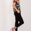 This velour set is the perfect choice for those who appreciate comfort and style on a daily basis. It consists of a blouse and pants, which form a harmonious duo of a casual look. The blouse, made of soft polyester, features a print that gives it an individual touch. Its short sleeves add lightness and casualness, perfect for warm days. The pants, kept in a solid color, are long and comfortable. Their high waistband with drawstring waistband makes them fit snugly, ensuring comfortable all-day wear. In addition, the side slip pockets are a practical feature, allowing you to safely store small items. The drawstring leg style gives the pants a casual feel, while adding a note of sporty lingo. With its casual style, this velour set will become an indispensable part of your everyday closet, adding comfort and style to any situation.