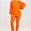 A tracksuit set consisting of a sweatshirt and leggings. An elongated sweatshirt with long sleeves and a round neckline. Long leggings with an elastic waistband. One size fits all for those wearing size S or M.