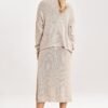 Two-piece set consisting of a midi dress and a bolero. Bolero with long sleeves, open front, and decorative bow on the front. The dress has thick straps and a deep neckline.