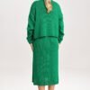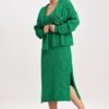 Two-piece set consisting of a midi dress and a bolero. Long-sleeved bolero, open front with a decorative bow. The dress has thick straps and a deep neckline.