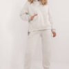 The warmed-up women’s casual sweatshirt set, ideal for everyday colder days, consists of a sweatshirt and pants. The set is made of a soft and warm blend of cotton and polyester for comfort and durability. The sweatshirt has long sleeves, a hood and a large, practical kangaroo pocket, which adds a sporty touch and functionality. Thanks to its insulation, the sweatshirt is ideal for cold days, and its plain pattern adds a classic, versatile look. The long-leg pants, which end in ribbed cuffs, have a high waist to accentuate the waist and ensure comfort. There is a tie at the waist for a perfect fit. In addition, the pants have slip-in side pockets, making them a practical choice for everyday wear. The whole set combines style, comfort and warmth, being an excellent choice for casual styling.