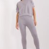 Insulated women’s casual sweatshirt set, ideal for colder days, consists of a sweatshirt and pants. Made from a combination of cotton and polyester, the set provides warmth, comfort and durability, ideal for everyday styling. The standard-length sweatshirt has short sleeves and a round neckline, giving it a lightweight and casual feel, despite the warmth. On the front of the sweatshirt there is a fashionable print, which adds originality and youthfulness to the set. The smooth design maintains a minimalist, universal look, easy to combine with other garments. The pants have tapered legs and a high waist, which accentuates the silhouette and ensures wearing comfort. There is an elastic waistband that guarantees a perfect fit. In addition, the pants are equipped with side slip pockets, making them a practical choice for everyday wear. This set is the perfect combination of comfort and style for cold, everyday days.