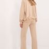 Women’s casual style tracksuit set, ideal for everyday outings, consists of a sweatshirt and pants. Made from a high-quality blend of cotton and polyester, the set provides comfort and durability, while the smooth pattern gives it a versatile character. The sweatshirt has long sleeves, a round neckline and practical patch pockets on the front for a sporty style. On the front there is a fashionable inscription, which attracts attention and adds originality to the whole. The long length of the sweatshirt makes it a comfortable piece of clothing, ideal for pairing with different bottoms. The pants have a straight leg cut and a high waist, which emphasizes the silhouette and provides comfort. The waistband features a drawstring for a customized fit, and the side slip pockets are a practical touch, perfect for storing small items. This set is the perfect combination of style and comfort, a great choice for everyday wear.